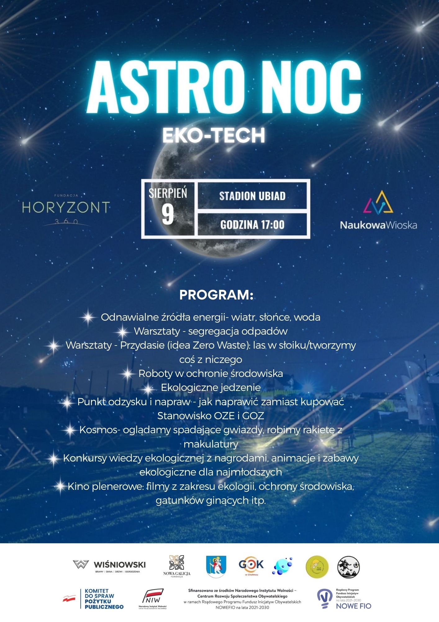 Już 9 sierpnia spotykamy się na stadionie w Ubiadzie, aby wspólnie przeżyć niezapomnianą noc pełną gwiazd, magii i fascynujących atrakcji naukowych. Startujemy o godz. 17:00!